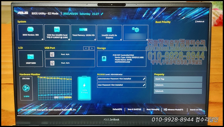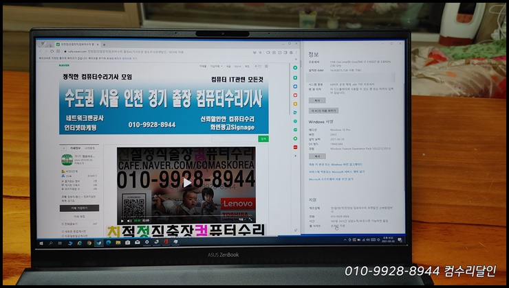 인천 연수구(연수동/연수1동/연수2동/연수3동/신연수역/원인재역/연수역/연수4단지/함박마을)컴퓨터수리 010-9928-8944 출장PC포맷기사 ASUS노트북 UX425E 포멧 윈도우10설치 후기