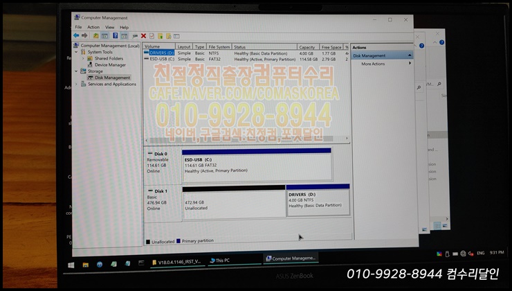 친정컴 출장컴퓨터PC수리AS서비스포맷달인기사)인천 연수구 연수3동 연수동 컴퓨터수리 아수스ASUS노트북 UX425E 포멧 윈도우10설치 후기