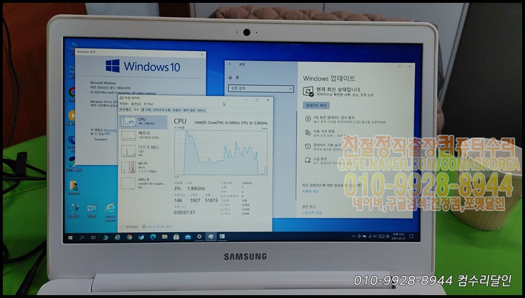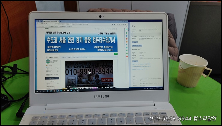 친정컴 출장컴퓨터PC수리AS서비스포맷달인기사)경기 광명시 소하동 컴퓨터수리 느려진 삼성노트북9Lite NT910S3P-K38S 포멧 윈도우10설치 후기